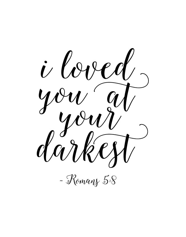 "i loved you at your darkest, romans 58, bible verse,scripture art,bible cover,quote prints